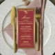 Elegantes Rot-Gold-Hochzeitsmenü Menükarte