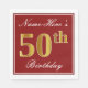Dieses einfache und elegante Papier-Serviette-Design enthält eine Nachricht wie "Name-Here’s 50th Birthday" (mit dem "50th" mit einem Imitat in goldener Farbe) in einem rot-farbenen Quadrat mit einer einfachen Kontur der Grenze. Der Name ist in einem Skriptähnlichen Text mit weißer Farbe und kann personalisiert sein. Napkins wie diese könnten vielleicht auf einer Geburtstagsparty für jemanden verwendet werden, der seinen fünfzigsten Geburtstag feiert. [~Z0000138]