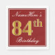 Dieses einfache und elegante Papier-Serviette-Design enthält eine Nachricht wie "NameHere’s 84 th Birthday" (mit dem "84." mit einem Imitat in goldener Farbe) in einem rot-farbenen Quadrat mit einer einfachen Kontur der Grenze. Der Name ist in einem Skriptähnlichen Text mit weißer Farbe und kann personalisiert sein. Napkins wie diese könnten vielleicht auf einer Geburtstagsparty für jemanden verwendet werden, der seinen vierundachtzig Geburtstag feiert. [~Z0000138]