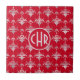 Elegantes Rot-Weiß-Damask-Monogramm Fliese