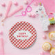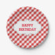 Elegantes rotes Gingham-Muster-personalisierter Geburtstags-Papier-Teller.