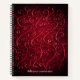 Elegantes rotes Notizbuch mit einem abstrakten strukturierten Digitalbild von skurrilen leuchtenden roten Wirbel und anpassbarem Text.