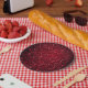 Schöne rote Papierplatte mit abstrakt strukturierter digitaler Malerei aus knebelglühenden roten Wirbel.