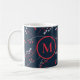 Elegantes rotes Pastellgraubeermuster auf Monogram Kaffeetasse