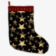 Elegantes Red Black and Imitate Gold Stars Muster mit Name, Large Coral Fleece Weihnachts-Strumpf, oder wählen Sie eine andere Größe, wählen Sie zwei Seiten oder einen einseitigen Strumpf