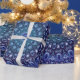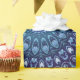 Vintages Royal Blue Damask Muster. Dieses elegante Verpackungspapier hat ein Muster von blauen Farbgradienten und Pfauenfedern-Stil Blumenmuster in der Mitte. Ideal für Weihnachten, Hochzeitspackung und Deko-Papier für Möbel und andere Projekte.