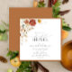 Moderne, elegante viereckige Braudusche mit einem blumengeschmückten Aquarellbouquet in trendigen, warmen, neutralen Farbtönen, weiß, marigold gelb und verbrannt sienna, umgeben von einem Rost verbrannte Orange. Diese warmen Farbtöne sind sehr vielseitig und Anzug-Brautparty in jeder Jahreszeit. Personalisieren Sie Ihre Brautparty-Details in weichem Offschwarz, betont mit einer schönen modernen handgeschriebenen Kalligraphie. Die Rückseite der Karte weist eine schöne, passende Aquarellstruktur auf. Copyright Elegant Invites by Anastasia Surridge, alle Rechte vorbehalten.