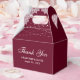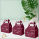 Setzen Sie Ihre Hochzeitsgeschenke in diese eleganten, rustikalen Bordeaux-Gastgeschenk Hochzeiten-Kisten mit weißem Blumenmotiv und Märchenleuchten. Diese bordeauxfarbenen Gastgeschenk Hochzeiten können Sie ganz einfach mit Ihren Hochzeitsdetails personalisieren. Unsere eleganten Bordeaux-Gastgeschenk Hochzeiten sind perfekt für Ihr romantisches burgundisches rustikales Hochzeitsfest-Party. Diese personalisierten Dankeschön können Sie Gefälligkeitsboxen an andere Anlässe, wie z.B. Brautduschen oder Babyduschen, anpassen.