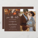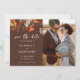 Diese romantische und elegante Herbsthochzeit Save The Date Fotokarte präsentiert ein schicke botanisches Design aus herbstlich Blume und Grün in warmen Tönen auf einem staubigen braunen Hintergrund und ist leicht mit einem Ihrer Lieblingsfotos aus der Verlobung anpassbar. Diese Save the Date-Karte ist Teil der Kollektion "Elegante Autumnal Floral Wedding", mit koordinierenden Gegenständen, um eine einzigartige Hochzeitssuite zu schaffen.
