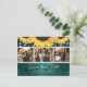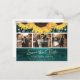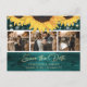 Personalisiertes aquamarines und sonnenblühendes HochzeitsFoto Save the Date Postkarten mit einem eleganten Imitat Gold-Folie Schriftart. Unsere Hochzeit speichern das Datum beinhaltet eine Foto-Collage von 3 Bildern vor einem aquamarinen rustikalen Holzhintergrund mit Saitenbeleuchtung. Dieses rustikale Foto mit Sonnenblumen Save the Date Postkarte personalisieren Sie ganz einfach mit Ihren Fotos und Hochzeitsdetails inklusive einer Hochzeitswebsite, falls gewünscht.