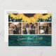 Elegantes rustikales Holz Aquamarin Sonnenblumen H Ankündigungspostkarte
