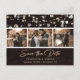 Elegantes rustikales Foto aus Holz Save the Date Postkarten mit einer Foto-Collage von 3 Bildern auf einem rustikalen Holzhintergrund mit Lichtern der Saiten. Dieses rustikale Foto Save the Date Postcard kann auf einfache Weise mit Ihren Fotos und Hochzeitsdetails wie z.B. einer Hochzeitswebsite auf Wunsch personalisiert werden. Für individuelle Anfragen senden Sie uns bitte eine Nachricht.