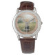 Perfektes Geschenk für Großeltern! Diese moderne Armbanduhr mit rustikalem Foto und personalisiertem Namen in mittelbrauner Holzpaneelenlandschaft.