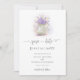 Ein mit Spitzen bedeckter, mit Lavendel und Weizen gefüllter Blume-Topf ist eine schöne Illustration, handbemalt in digitaler Wasserfarbe, die diese rustikale Hochzeit Save the Date schmückt, die auch eine Fotovorlage auf der Rückseite enthält. Romantisch und charmant, ist es eine schöne Wahl für eine Scheunenhochzeit, eine Hochzeit im Freien, eine Gartenhochzeit oder jede rustikale Umgebung.
