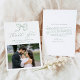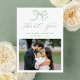 Teilen Sie Ihre Wertschätzung mit dieser eleganten Foto Hochzeit Dankeschön-Karte mit einem handgezeichnet Salbei grünen Bogen und "Danke" in würdevollem Kalligraphie auf einem weißen Hintergrund. Fügen Sie Ihre Namen und Ihr Hochzeitstag über Ihrem horizontalen Foto für einen wahren Tag, der Ihren besonderen Tag widerspiegelt. Die Rückseite der Karte bietet Platz für Ihre persönliche Danksagung, die Ihnen helfen, Dankbarkeit für die Lieben für ihre Unterstützung und nachdenkliche Geschenke ausdrücken. Die zeitlose Weiß- und Weiß-Palette macht dieses Design zu einem idealen Ort für rustikale Hochzeiten, für den Garten oder für moderne Hochzeiten.
