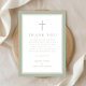 Elegantes Salbeigrünes religiöses Kreuz Taufe Dankeskarte