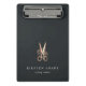 Die elegante personalisierte Zwischenablage für Ihr Salon- oder Friseurgeschäft besteht aus zwei Textzeilen in klassischer Weißschrift, auf einem weichen schwarzen Hintergrund mit einer Blume-verzierter Schere in Imitaten Kupferfolie. Design wiederholt sich auf der Rückseite. Bitte beachten Sie, dass diese Zwischenablage eine Mini-Größe hat; Vollversion auch in unserer Rose Gold Floral Scissors Salon Kollektion erhältlich.