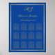 Dieses elegante Saphir Blau- und Goldplakat enthält ein Imitat Goldkalligraphie-Monogramm mit den Namen der Braut und des Bräutigams und den Namen der Gäste, um mit einem Imitat Goldrahmen zu personalisieren. Passt bis zu 12 Tabellen an. Entworfen von Susan Coffey.