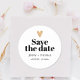 Elegantes sauberes Hochzeitgoldenherz Save the Dat Runder Aufkleber