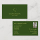 Elegantes Schlichtes Waldgrün mit Monogramm und Fo Visitenkarte