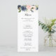 Diese elegante, einfache Winter-Blumenkalligraphie-Dinner-Karte ist perfekt für eine moderne Hochzeit. Das Design ist in dunkelblau, blau, blau, navy, rosa, rot, goldgelb und grün, Blume gehalten und in eleganten Bouquets untergebracht. Dieses Menü kann für Hochzeitsempfang, Probe Dinner, Brautparty oder jede Veranstaltung verwendet werden.