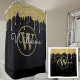 Chic Schwarz und Gold Monogramm mit goldenen Glitzer Tropfen Duschvorhang. Sie können den Namen, das Monogramm personalisieren und den Schriftart und die Farben anpassen, um Ihr eigenes einzigartiges Design zu erstellen. Entwickelt von Thisisnotme©