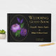 Dieses Design ist beeindruckend und elegant, mit einem schwarzen Rücken und einer Vorderseite mit einer ätherischen lila Aquarellblume in einem goldenen Oval an der Vorderseite. Ebenfalls vor dem Haus befinden sich die Phrase "Wedding Guest Book", die Namen der Ehepaare und das Datum und die Lage des Dienstes. Die Wirbelsäule identifiziert den Band als Gästebuch für die Hochzeit eines Paares, um sich leichter in Ihrem virtuellen Regal zu identifizieren. Genießen Sie es, Ihr Gästebuch mit Ihrer Einladung und anderen Artikeln aus einer ganz besonderen Zeit in Ihrem Leben zu verbinden.