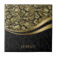 Schwarz und Gold Vintag elegantes, florales Damastmuster. Benutzerdefiniertes Monogramm.