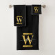 Elegantes Schwarz & Gold Monogram Modernes Skript Badhandtuch Set