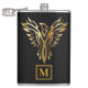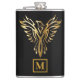 Elegantes Schwarz-Gold-Phoenix-Rising-Monogramm Flachmann