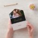 Alles in einer Hochzeitseinladung mit Ihrem besonderen Foto und eleganten goldenen Signatur-Script-Namen und Monogramm-Initialen auf schwarzem Hintergrund. Die Einladung enthält eine perforierte RSVP-Karte, die für Sie individuell adressiert oder links als leere Adresse für die Handschrift der Adressdaten Ihres Gastes verwendet werden kann. Entwickelt von Thisisnotme©