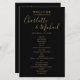 Elegantes Schwarz-Gold-Script-Hochzeitsprogramm