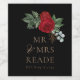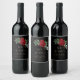 Elegantes Schwarz & Gold Script Rote Blüte Weinetikett