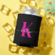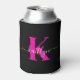 Elegantes Schwarz-Hot-Pink-Script-Monogramm Dosenkühler