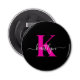 Elegantes Schwarz-Hot-Pink-Script-Monogramm Flaschenöffner