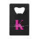 Elegantes Schwarz-Hot-Pink-Script-Monogramm Geldbeutel Flaschenöffner