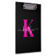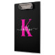 Elegantes Schwarz-Hot-Pink-Script-Monogramm Klemmbrett