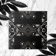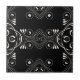 Elegante abstrakte Keramik Fliesen mit weißen Ornamenten auf schwarzem Hintergrund.