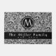 Elegantes Schwarz-Weiß-Blau | Familienname und Dat Fußmatte