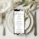 Fügen Sie Ihrem Hochzeitsempfang eine Touch zeitloser Eleganz hinzu, mit diesem Schwarz-Weiß-Hochzeitsmenü. Dieses elegante und bedruckbare Menü eignet sich hervorragend für moderne, klassische und Vintage Hochzeiten. Einfache Anpassung an Ihren Hochzeitsstil.