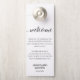 Dieser elegante, schwarz-weiße Empfangstürenaufhänger ist ideal, um an den Zimmertüren des Hauses verlassen, sodass Sie sich auf der Hochzeitsfeier sofort in der Stadt aufhalten können. Teil der Sammlung Alejandra.