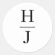 Feiern Sie Ihre Gewerkschaft mit unserem eleganten Schwarz-Weiß-Mongram Classic Round Sticker, einem perfekten Emblem Ihrer Liebe. Dieses ausgeklügelte Design zeichnet sich durch die miteinander verflochtenen Initialen "H" und "J" aus, die die schöne Verbindung zweier Leben symbolisieren. Dieser Aufkleber ist mit minimalistischer Ästhetik gestaltet und verbindet zeitgenössische Eleganz mit zeitlosem Charme. Er eignet sich hervorragend, um Ihre Hochzeitsfeiern mit persönlicher Touch zu verbinden oder Dankeschön an Sie zu richten. Die gepflegte, schlichte Typografie bietet eine moderne Drehung auf klassischen Hochzeitsmonogrammen und bietet eine einzigartige und formelle visuelle Erklärung, die jedes Hochzeitsthema, von einer luxuriösen Frühjahrsfeier bis hin zu einem romantischen, minimalistischen Ereignis, begleitet.