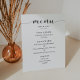 Elegantes Schwarz-Weiß-Hochzeitsmenü Sockelschild