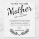 Elegante Schwarz-Weiß-Etiketten für zukünftige Schwiegermutter. Fügen Sie eine personalisierte Nachricht hinzu, um dieses Geschenk besonders zu machen.