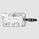 Dieses elegante, typisch blumengeschmückte Gepäckanhänger zeichnet sich durch ein blumengeschmücktes, von schwarz-weißer Rose gezeichnetes Design mit weißem Overlay aus. Personalisieren Sie Ihren Namen in modernen Skripten. Entworfen von Susan Coffey.