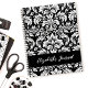 Ein elegantes schwarz-weißes Damast-Muster schmückt dieses Notizbuch. Personalisieren Sie es mit Ihrem Namen. Entworfen für Sie von BlackBerry Boulevard.