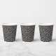 Diese Papiertassen haben ein elegantes, abstraktes Schwarz-Weiß-Damast-Muster mit extravaganten weißen Rollen.