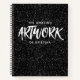 Ein gürtelschwarzer Glitzer personalisiertes Skizzenbuch. Die Wörter "Das Phantastische Kunstwerk von" in einem Schriftart mit Pinselskript, der mit dem Namen unten personalisiert ist. Passen Sie das Sketchbook mit dem Namen Ihrer Wahl an, damit sich jemand ganz besonders fühlt. Macht ein lustiges Geschenk zum Geburtstag oder zu Weihnachten. Es gibt eine Vielzahl von Farben. Entworfen für Sie von BlackBerry Boulevard.