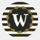 Elegantes Schwarz-weißes Goldstreifen-Kronen-Monog Runder Aufkleber