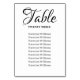 Elegantes Skript benutzerdefinierte Text Hochzeitungs-Tischnummer, Gästebuchkarte. Anpassbare Phrase, Text, Datum, Namen. Schwarz und Weiß.